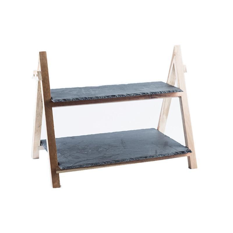 スレートプレート 2段スタンド 天然 黒色 寿司 デザート ケーキ スイーツ 高級感 宴会 パーティー アフタヌーンティー ディスプレイ 円形 スクエア型 ハート型 おしゃれ