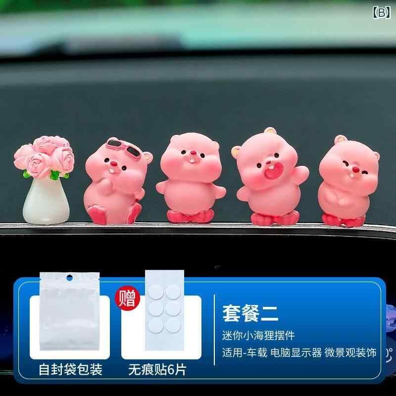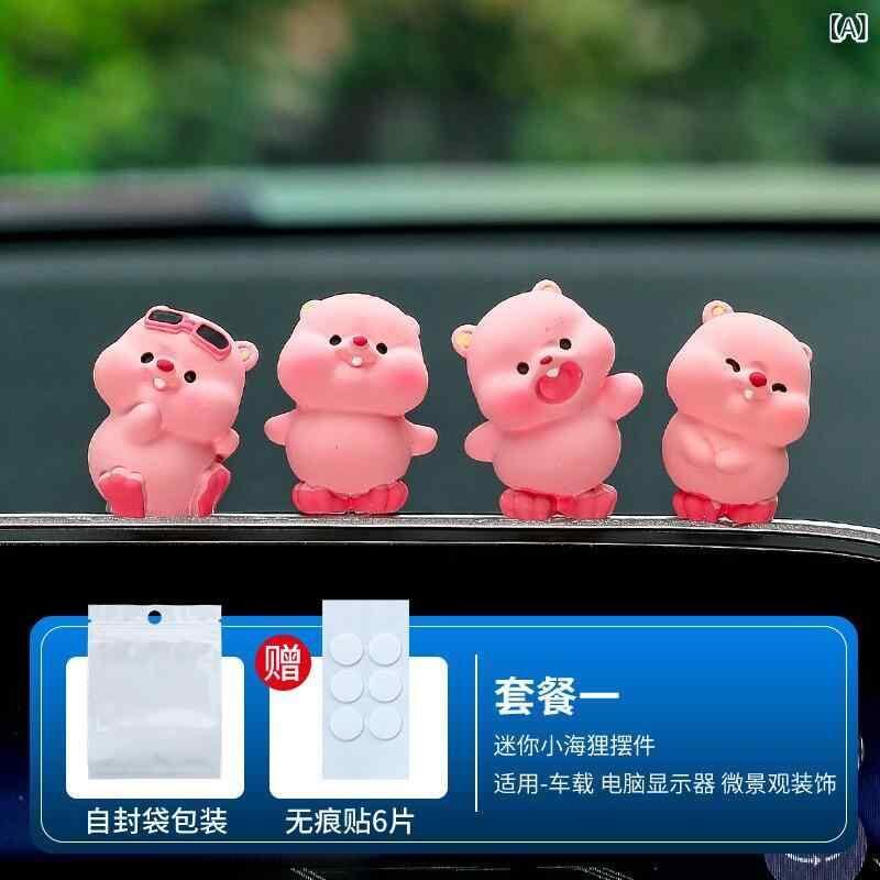 カーオーナメント かわいい 子ビーバー フィギュア 4体セット 車内装飾 ダッシュボード センターコンソール 樹脂製 置物 キャラクター 動物モチーフ インテリア雑貨
