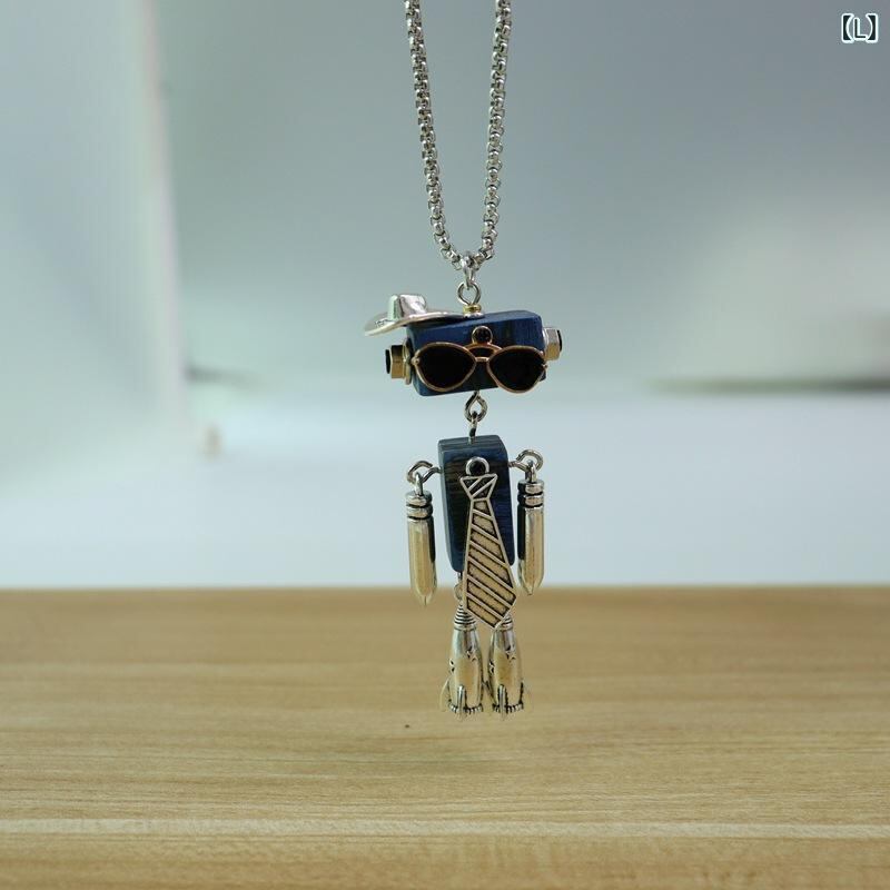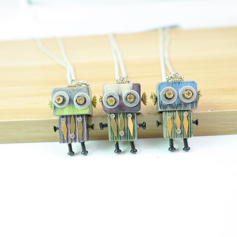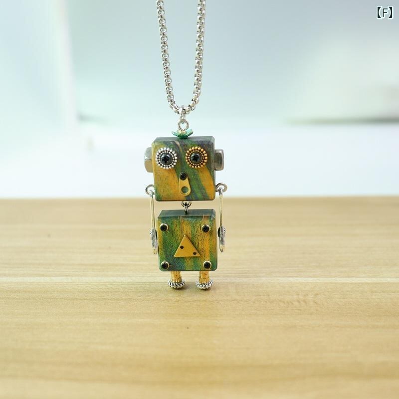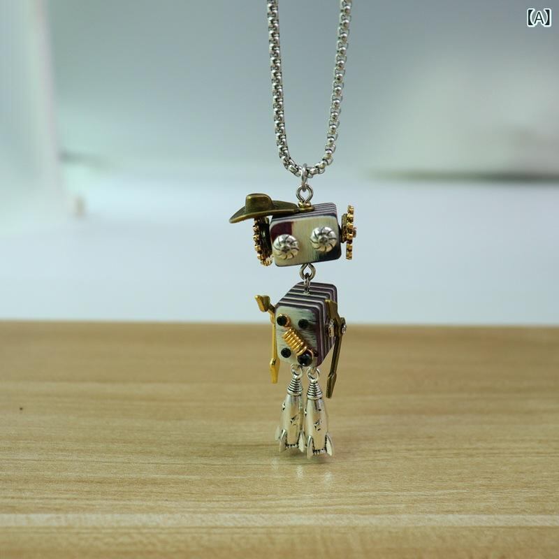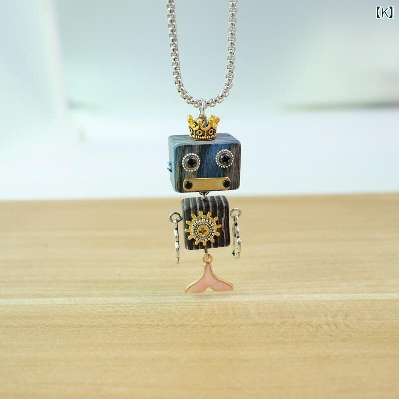 ネックレス ユニセックス 木製 ロボット スチームパンク風 DIY キーホルダー 精巧 手作り モチーフ 合金ペンダント 普段使い カジュアルアクセサリー