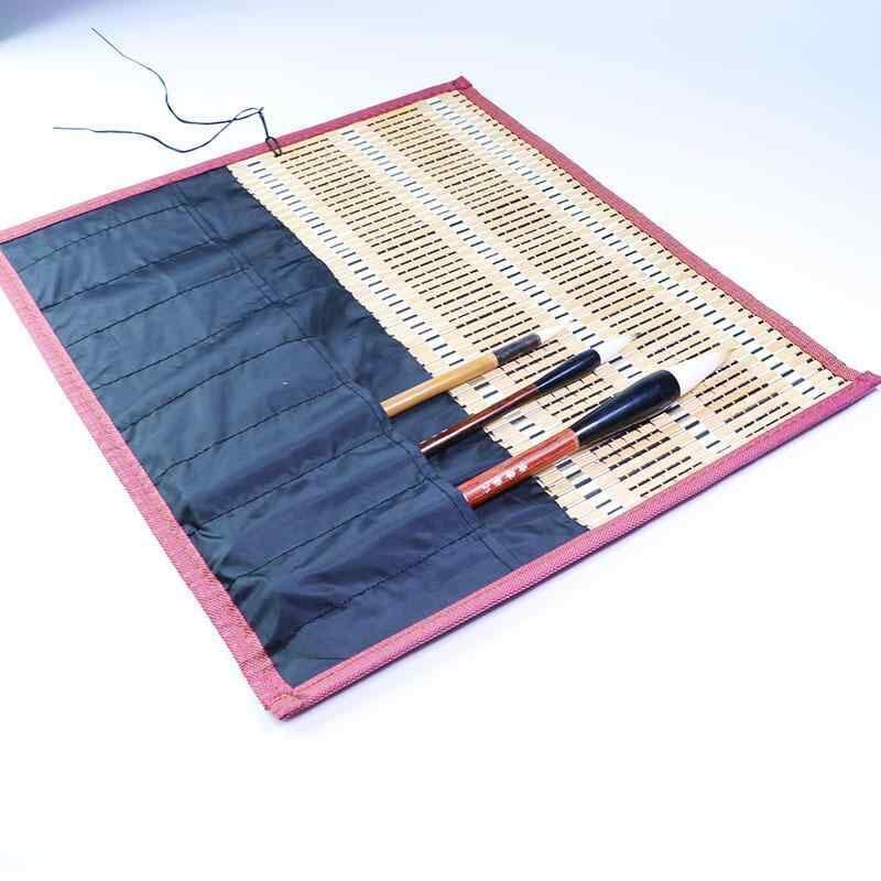 筆巻き 竹製 上質 縁取り 大型 書道用 毛筆入れ 中国画 水墨画 習字 携帯用 筆袋 ロールアップ式 ペンケース 丈夫 通気性 自然素材 和風 文房具