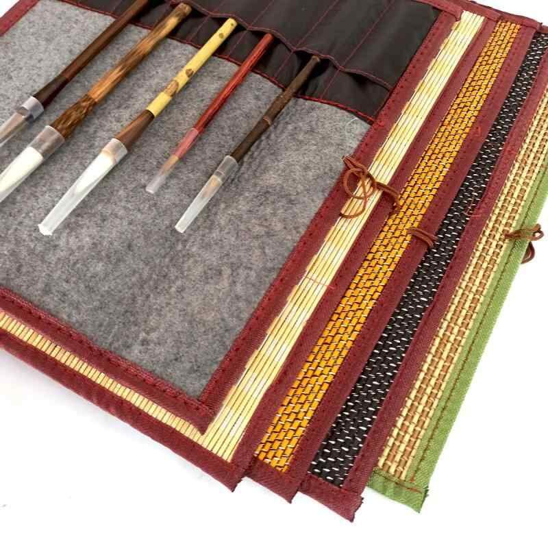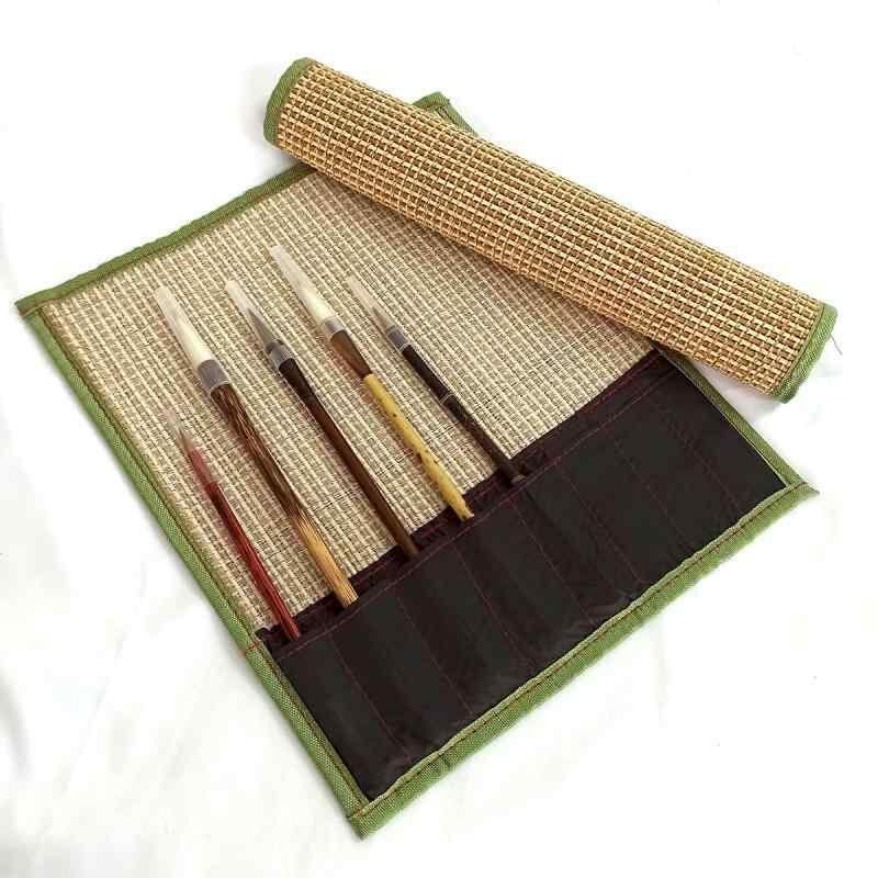 書道用品 筆巻き 筆入れ 竹製 収納ケース 学生用 習字 筆袋 整理 整頓 持ち運び 男女兼用 文房具 天然素材 竹編み 四角形 しっかりとした作り 黄竹 黒竹 茶色