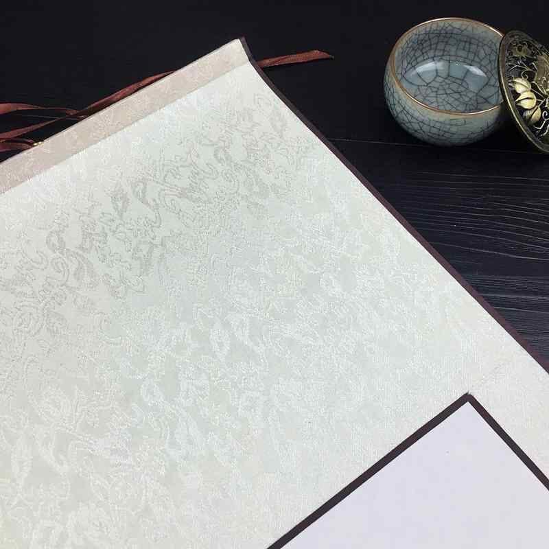 掛軸 書道 書画 水墨画 空白宣紙 絹表装 無地 高級感 高品質 手書き用 壁掛け 飾り軸 多サイズ対応 横軸 縦軸 シルバーホワイト ベージュ ゴールド