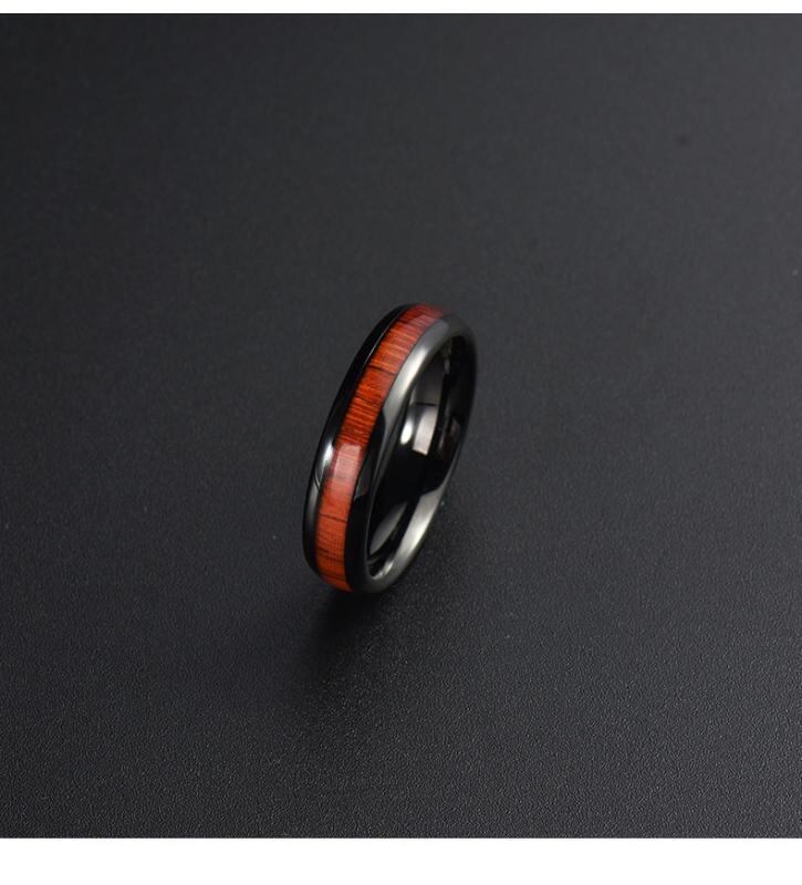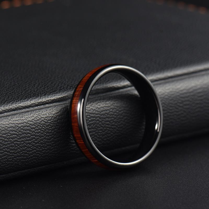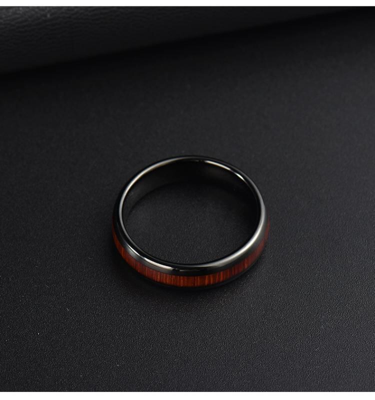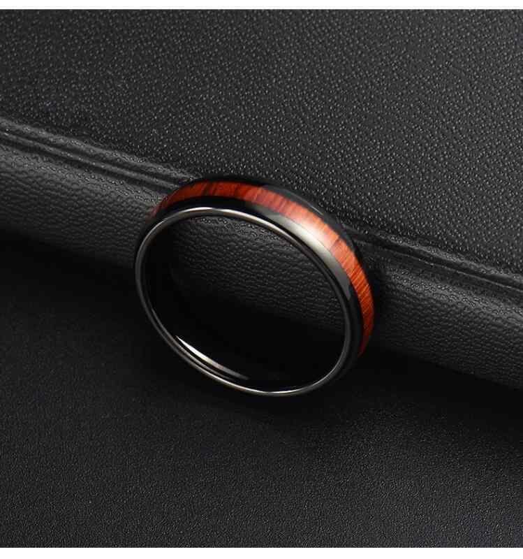指輪 男女兼用 レトロ ヴィンテージ スタイリッシュ 木目 幾何学デザイン ステンレス製 タングステン鋼 ウッド 天然木 埋め込み リング ブラック 普段使い ビジネス カジュアル おしゃれ 上品 アクセサリー