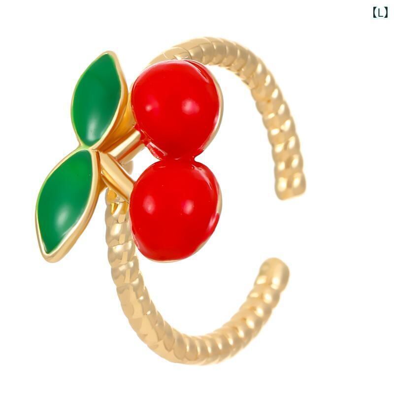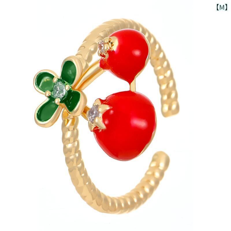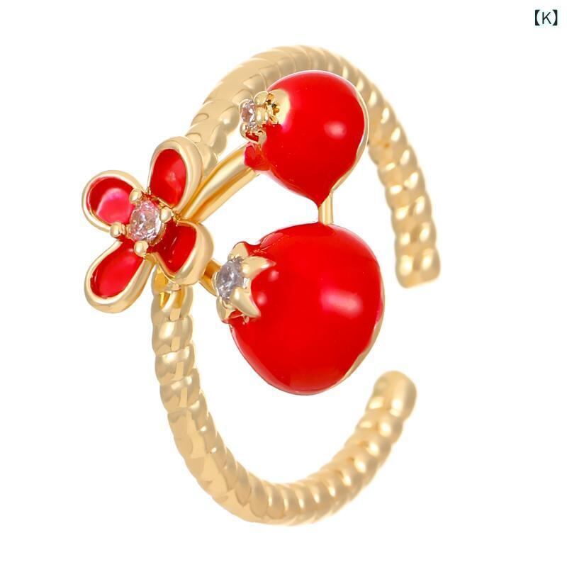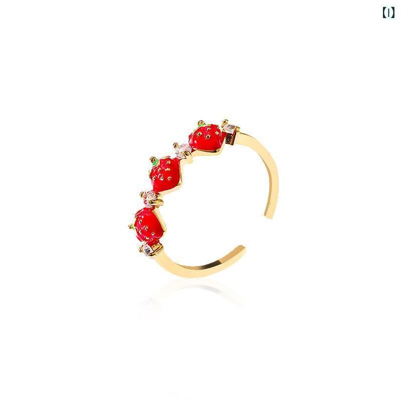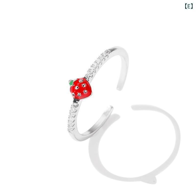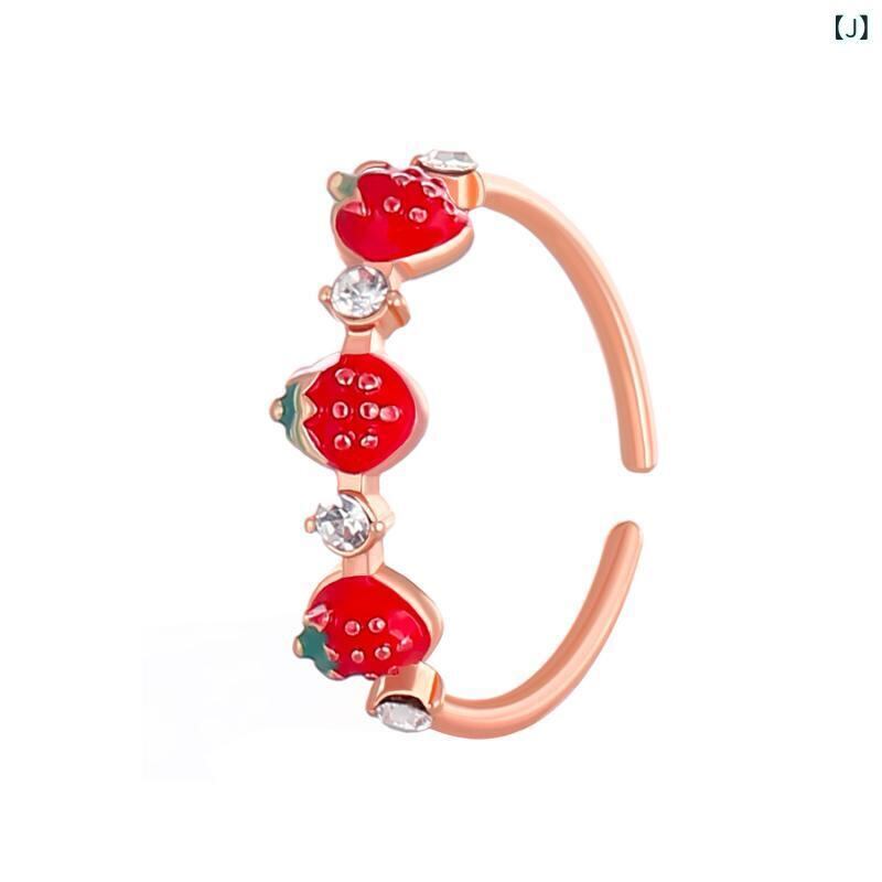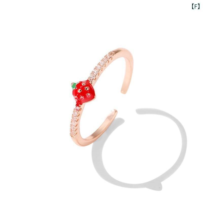 リング レディース 学生 親友 韓国風 ファッション 爽やか スイート 個性的 いちごモチーフ ラインストーン エナメル加工 オープンリング フリーサイズ 人差し指 小指 指輪 ローズゴールド シルバーカラー デイリーユース プレゼント