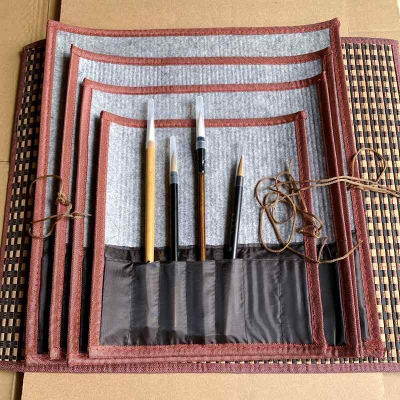 筆巻き 書道筆 竹製 携帯用 ソフト裏地付き 筆入れ ロールタイプ 中国風 レトロ クラシック 文房具 収納ケース 習字 絵画 道具 保護 大容量 各種サイズ対応 四辺パイピング仕上げ