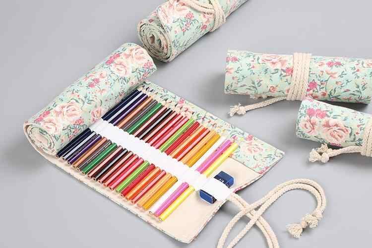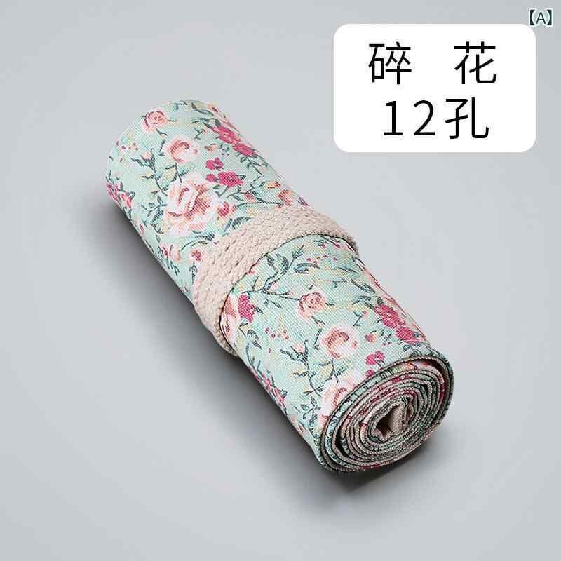 ロールペンケース 男女兼用 小花柄 帆布製 手作り ペンポーチ おしゃれ かわいい 多機能 大容量 スケッチ用 色鉛筆 画材 文具収納 持ち運び 筆入れ 小物入れ