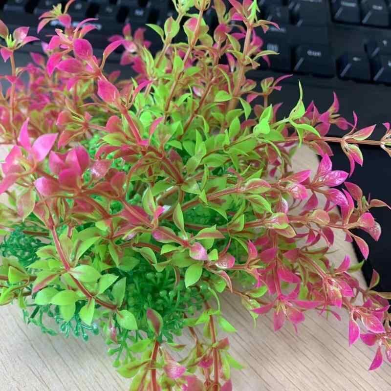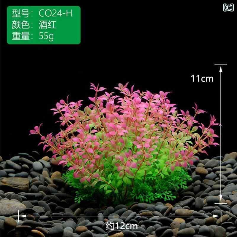 人工水草 水槽用 レイアウト オブジェ リアルフェイクグリーン 魚槽小型置物 円柱型水槽飾り プラスチック製アクアリウム用品 観賞魚熱帯魚向け メンテナンスフリー装飾 グリーン ワインレッド