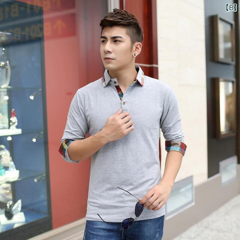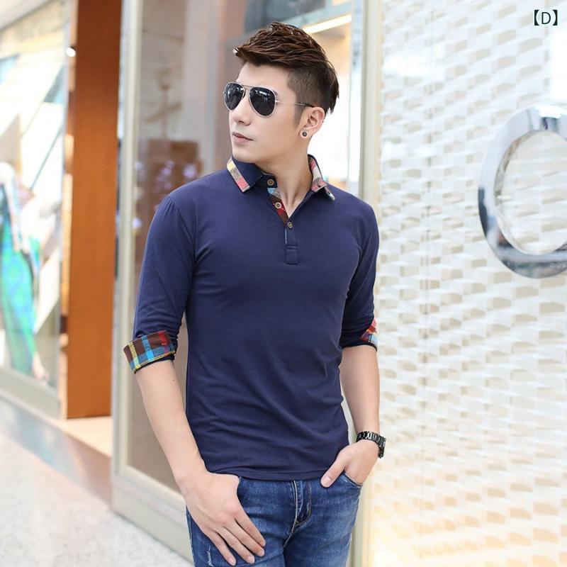 ポロシャツ メンズ 長袖 無地 襟付き 切り替えデザイン プルオーバー カジュアル トップス 綿 コットン スリムフィット 秋冬 春秋 デイリーユース