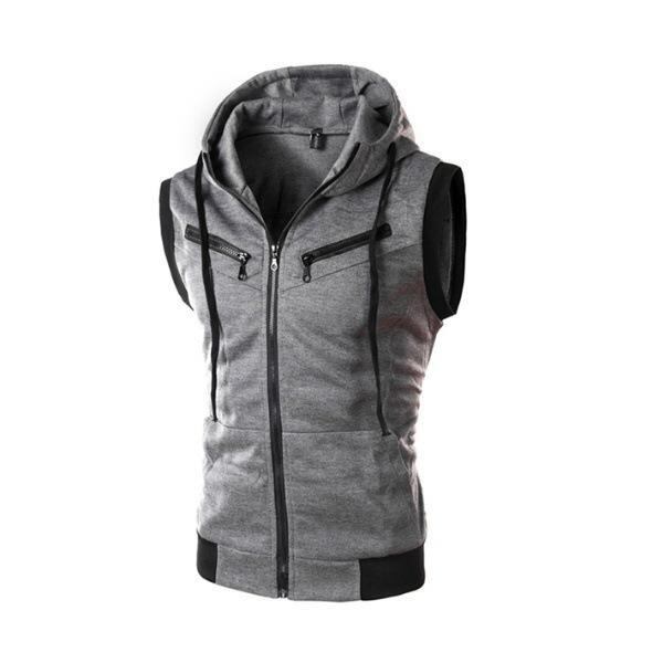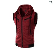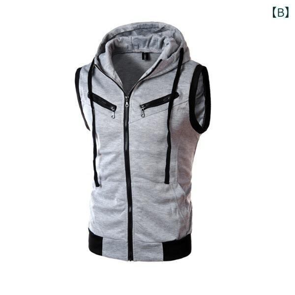 ベスト メンズ 男性用 フード フーディ フード付き カジュアル 普段使い スポーツ 運動 アウトドア ストリート ポリエステル スリムフィット パッチポケット 立体ポケット ダークグレー ライトグレー ワインレッド ジレ
