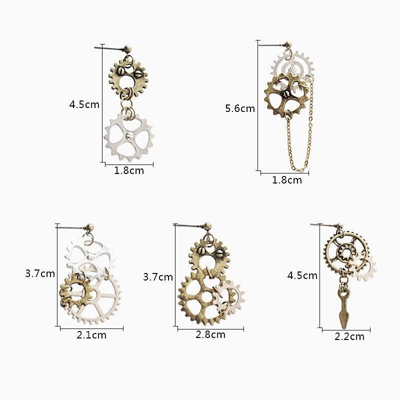 イヤリング イヤーカフ ピアス メンズ レディース ユニセックス 非対称 歯車 ギア 機械的 インダストリアル スチームパンク ゴシック パンク ロック ダーク系 レトロ ヴィンテージ クラシック アート 合金製 クール 個性的 ファッション