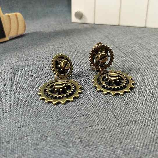 耳飾り レディース スチームパンク風 パンク ギア 歯車 ゴシック レトロ アシンメトリー 非対称 ピアス イヤリング ノンホールピアス 合金製 シルバー 金メッキ 金属感 ヴィンテージ アンティーク