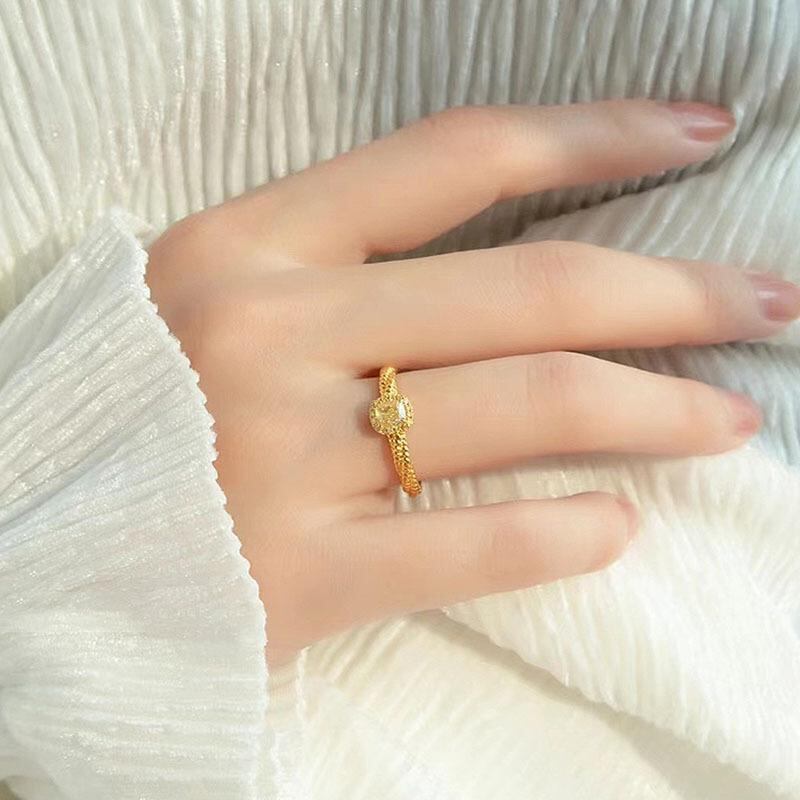 リング 男女兼用 ツイストリング ねじり 指輪 スクエアカット 四角 イエロー 黄色 高級感 輝く キラキラ フリーサイズ サイズ調整可能 銅製 幾何学模様 レトロ アンティーク ファッション アクセサリー