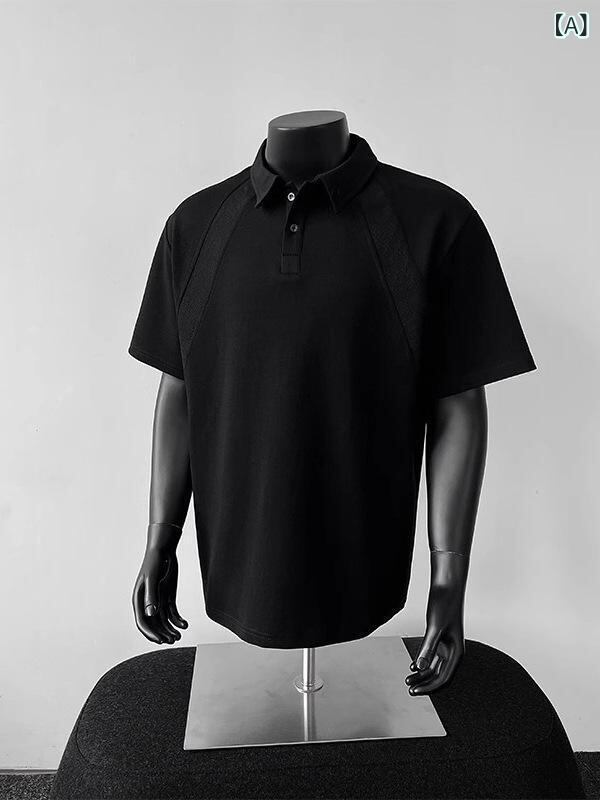 POLOシャツ 男性用 10代 20代 半袖 夏用 ゆったり ルーズフィット ヘビーウェイト 厚手 肉厚 襟付き 無地 ポリエステル アメカジ カジュアル ブラック アッシュグレー オフホワイト