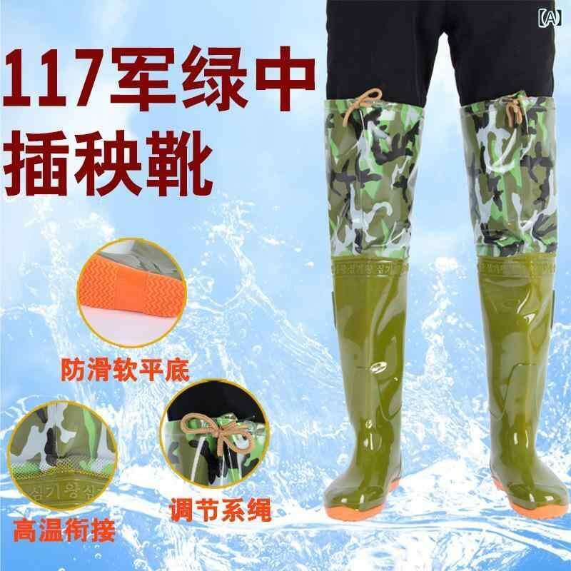 ウェーダー メンズ 男女兼用 ヒップウェーダー ロング丈 防水 防滑 PVC ゴム素材 柔らかい フラットソール 滑り止め 波型ソール 田植え 釣り 漁業 農業 水仕事 ぬかるみ 泥水